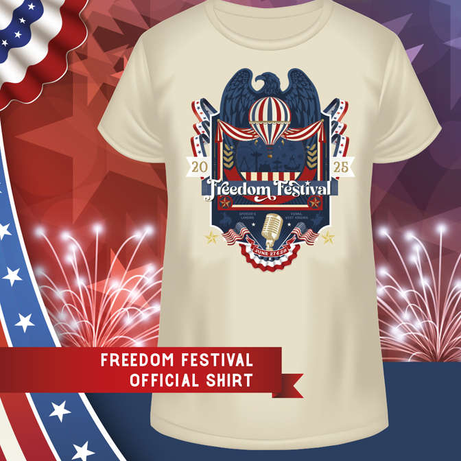 The official Freedom Festival shirt is available for preorder online. You may also purchase shirts at the festival. All preorders must be picked up at the festival. Preorders cannot be mailed.